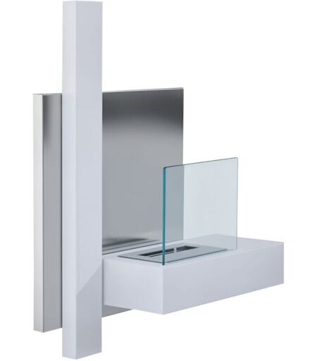 HOMCOM Cheminée bioéthanol murale design Bauhaus 1 brûleur 1,5 l 75L x 22l x 63H cm couverture 20-25 m² acier blanc inox. brossé