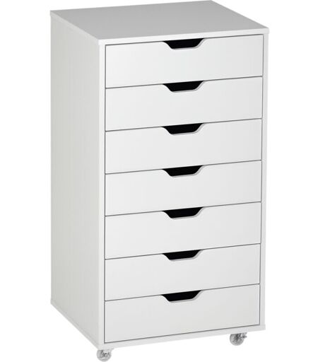 VINSETTO Caisson bureau - rangement bureau 7 tiroirs - dim. 47,5L x 39,5l x 90H cm - blanc