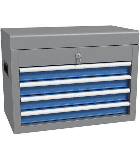 DURHAND Boite à outils métallique caisse à outils - 4 tiroirs + plateau verrouillables - tapis eva poignées tôle acier gris bleu