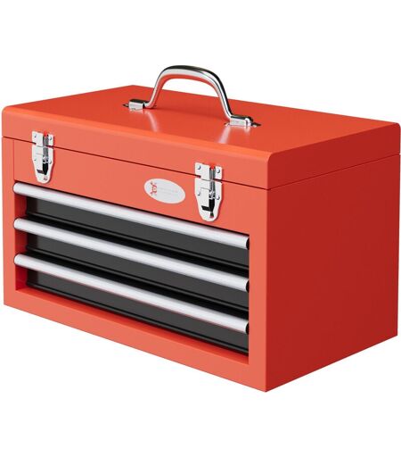 DURHAND Boite à outils métallique caisse à outils 3 tiroirs + plateau tapis eva poignée tôle acier rouge noir