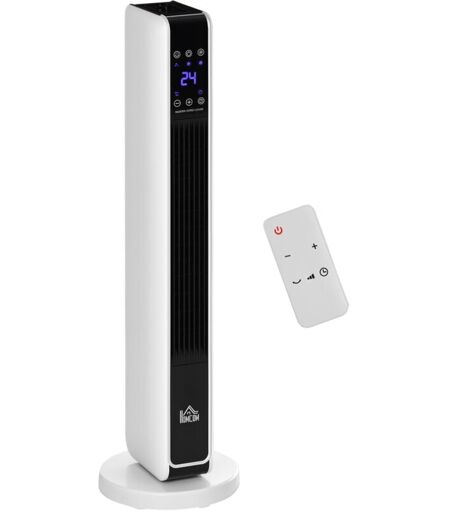 HOMCOM Radiateur électrique céramique PTC - chauffage soufflant oscillant 1100/2200W - télécommande incluse - timer 8h - blanc
