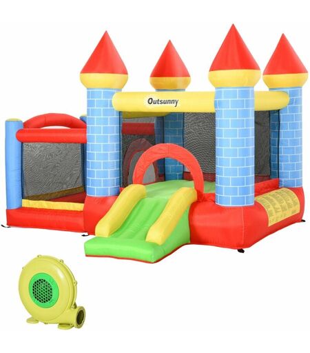 Outsunny Château gonflable enfant - toboggan, trampoline, piscine, panier - gonfleur, sac de transport inclus - dim. 2,8L x 2,6l x 2,1H m - polyester