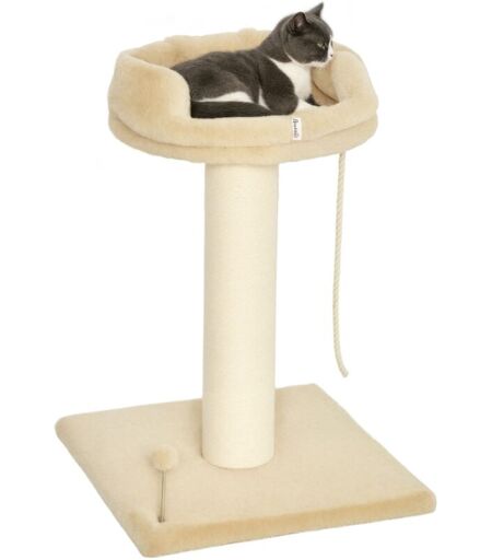 PawHut Arbre à chat griffoir grattoir sisal naturel plateforme d'observation corde d'escalade boule à ressort peluche beige
