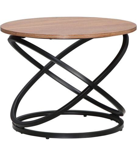 Homcom - Table basse ronde design industriel néo-rétro ø 60 x 46H cm acier anneaux noir aspect chêne clair