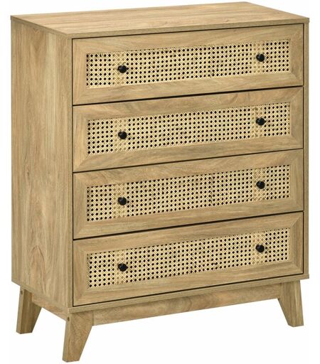 Homcom - Commode 4 tiroirs style bohème chic cannage en rotin aspect bois de manguier