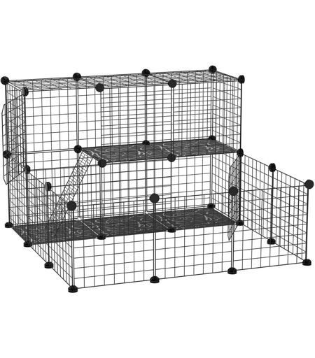 PawHut Cage parc enclos rongeurs modulable dim. L 105 x l 105 x H 70 cm 2 niveaux 2 portes rampe résine PP fil métallique noir
