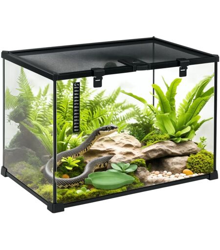 PawHut Terrarium en verre - vivarium reptiles & batraciens - habitat tortue - couvercle grillagé coulissant verrouillable - distributeur eau, thermomètre