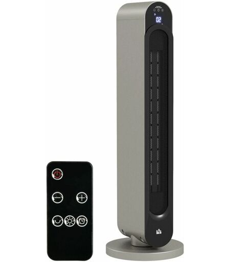 Homcom - Chauffage soufflant oscillant 1100/2200 w - mini radiateur céramique ptc - télécommande incluse - chauffage d'appoint gris noir