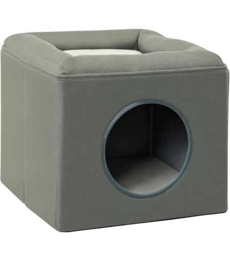 PawHut Panier chat pouf 2 en 1 - coussin amovible lavable - mdf pvc tissu aspect lin vert de gris