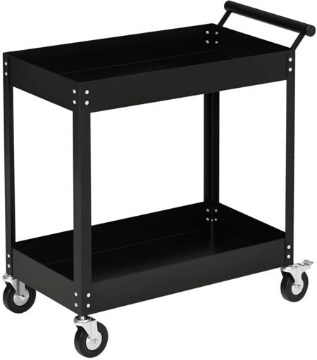 DURHAND Chariot desserte d'atelier en acier 2 plateaux sur roulettes avec poignée - charge max. 150 kg - 84,5 x 38 x 84 cm noir