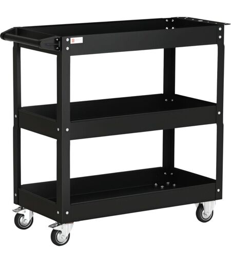 DURHAND Chariot desserte d'atelier acier 3 plateaux sur roulettes avec poignée - charge max. 150 kg - 78,8 x 35,3 x 72 cm noir