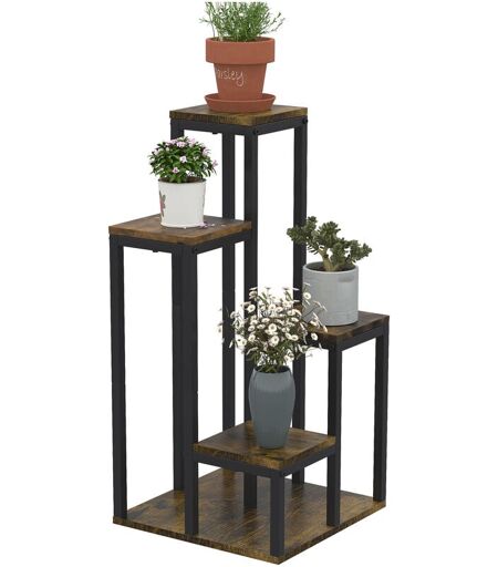 Outsunny - Support à fleurs style industriel 5 niveaux - porte plante 4 étagères - acier époxy noir aspect bois foncé