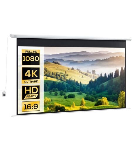 HOMCOM Cran de projection motorisé home-cinéma format 16:9 120 pouces 4K hd avec télécommande blanc noir