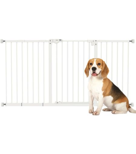 Pawhut - Barrière de sécurité longueur réglable porte double verrouillage sans perçage acier plastique blanc