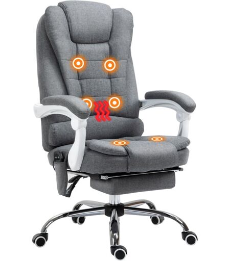 Vinsetto - Fauteuil de bureau direction massant chauffant hauteur réglable dossier inclinable tissu gris