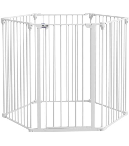 PawHut Barrière De Sécurité Parc Enclos Chien Modulable Pliable Porte Verrouillable Intégrée 6 Panneaux Acier Pp Blanc