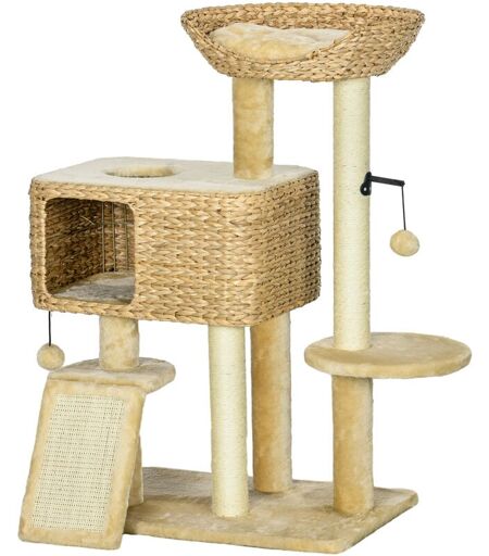 Pawhut - Arbre à chat style cosy chic griffoirs sisal naturel équipement multiple peluche jacinthe d'eau beige