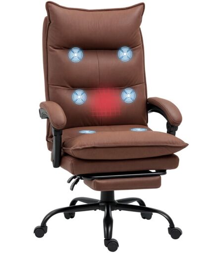 Vinsetto - Fauteuil de bureau massant chauffant inclinable réglable repose-pieds rétractable microfibre marron