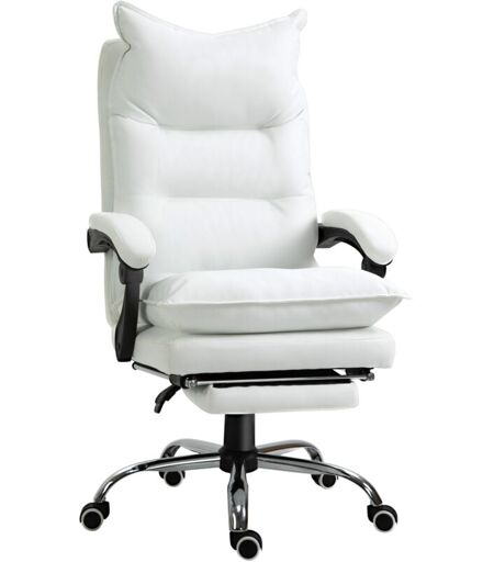 Vinsetto - Fauteuil de bureau direction hauteur réglable dossier inclinable repose-pied intégré revêtement synthétique blanc