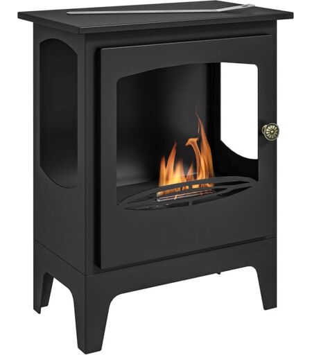 HOMCOM Cheminée bioéthanol sur pied style néo-rétro poêle - brûleur 1,2 L - contrôle de flamme et manche inclus - acier noir