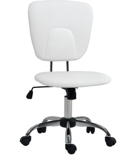 Travaillant de chez vous ou pour de longues sessions au bureau, optez pour la chaise d'ordinateur Vinsetto. Confort maximal avec fonction basculante pour les lombaires, son revêtement synthétique blanc ajoute une touche élégante à l'espace de travail. Caractéristiques: - Fauteuil de bureau à style moderne s'adapte à la plupart des décorations intérieures; - Prenez une pause et étirez-vous avec une fonction d'inclinaison; - Fauteuil de bureau confortable à hauteur réglable de 43 cm à 52 cm pour s'adapter à votre manière de vous asseoir; - Le revêtement synthétique est luxueux et facile à entretenir; - Siège ergonomique de bureau sans accoudoirs permet de gagner de l'espace au sol; - Les roulettes pivotantes et l'assise assurent une mobilité facile et rapide; - Montage nécessaire; Spécifications: - Couleur : blanc; - Matériau : revêtement synthétique, rembourrage mousse, acier; - Dimensions totales : 50L x 54l x 87,5-96,5H cm; - Dimensions de l'assise : 47L x 44l x 43-52H cm; ...