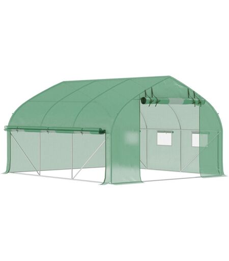 Outsunny - Serre de jardin tunnel 10,4 m² - 6 fenêtres et porte zippée avec moustiquaires - acier galvanisé pe vert
