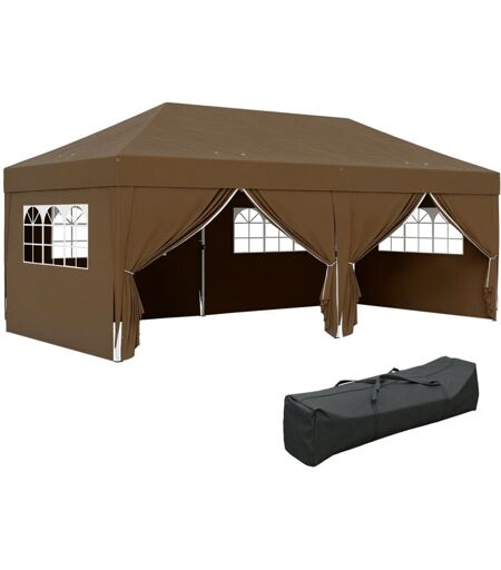 Outsunny Tonnelle barnum pliant pop-up 5,9L x 2,95l x 2,85H m 6 parois latérales amovibles 4 fenêtres sac de transport chocolat