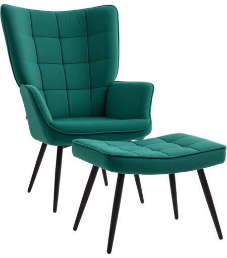 Homcom - Fauteuil design néo-rétro haut dossier effet capitonné à oreilles - repose-pied inclus - piètement effilé acier noir tissu aspect velours