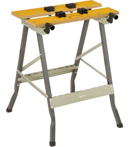 DURHAND Établi étau pliable - 4 serre-joints, rangements, outils mesure - charge max. 100 Kg - métal gris MDF naturel