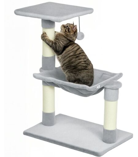 PawHut Arbre à chat 3 griffoirs grattoirs sisal naturel plateforme hamac et boule suspendue dim. 50L x 36l x 70H cm peluche haute densité 220 g/m² gris clair