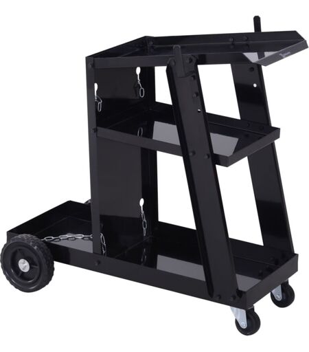 Durhand - Chariot de soudage à 3 niveaux mobile 4 roues - poste à souder - support pour bouteille avec chaînes de soutien - acier noir