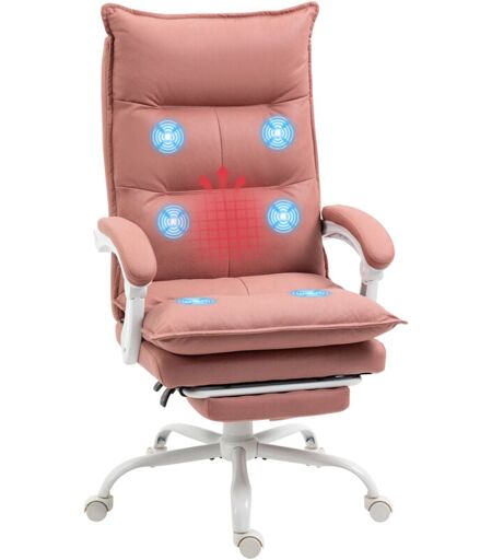 Vinsetto - Fauteuil de bureau massant chauffant inclinable réglable repose-pieds rétractable microfibre rose