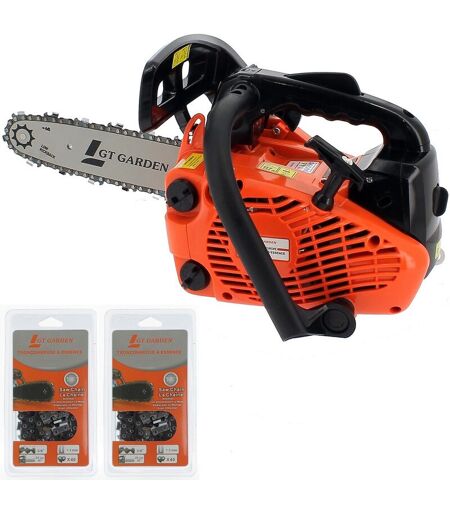 GT GARDEN Tronçonneuse élagueuse thermique 25 cm3, 1 CV, guide 26 cm, 2 chaînes