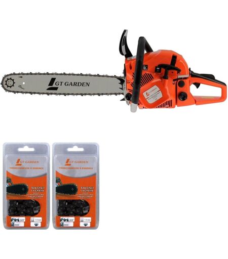 Gt Garden - Tronçonneuse thermique 62 cm3, 3.5 cv, guide 50 cm, 2 chaînes