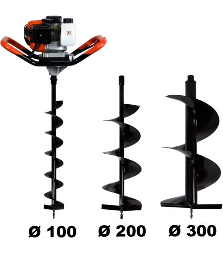 Gt Garden - Tarière thermique 52 cm3, 3 cv + lot de 3 mèches (100, 200 et 300 mm)