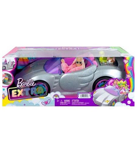 Mattel Coffret Barbie Grande Voiture Décapotable Grise Avec Paillettés + 3 Accessoires - Set Véhiculé Poupées Mannequin - Jouet Fille + 1 Carte Tigre