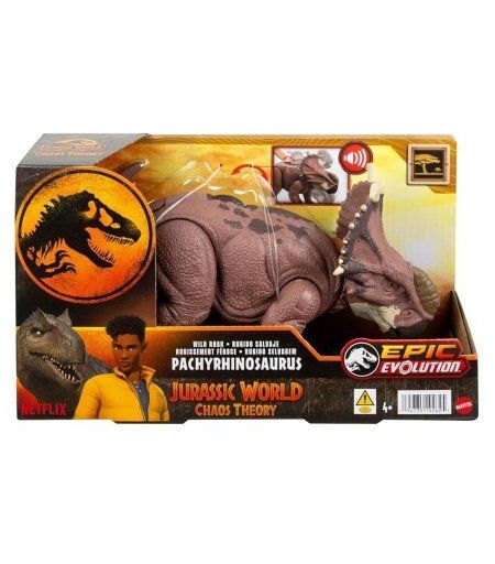 Jurassic World - Dinosaure Pachyrhinosaurus 28cm Avec Son, Epic Evolution - Rugissement Feroce - Set Figurine Articulee Et Carte