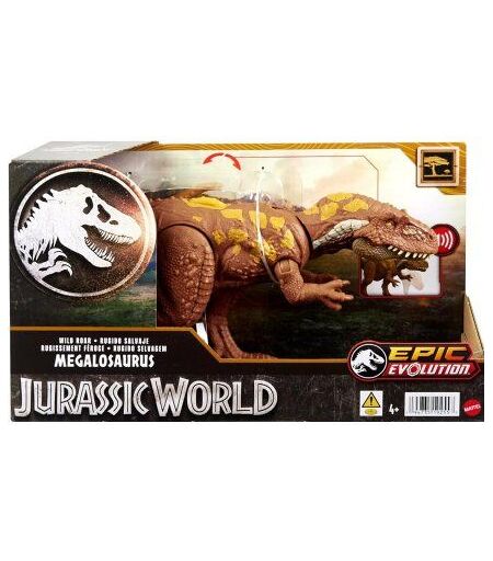 Mattel coffret Jurassic World - Dinosaure Megalosaurus 30 cm avec son, Epic Evolution - Rugissement Feroce - Set Figurine articulée et carte
