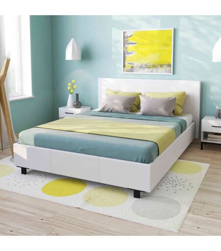 Terre de Nuit Lit en métal avec revêtement PVC blanc 160x200 - LT14011