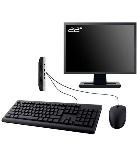 PC HP ProDesk 600 G4 DM Ecran 22" Intel I7-8700T RAM 32Go SSD 480Go W11 Wifi