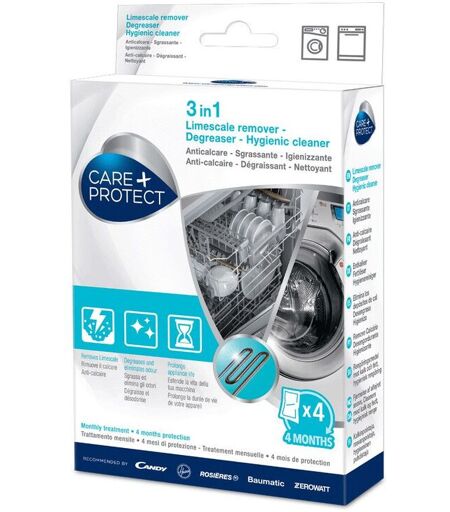 Dégraissant / détartrant/ nettoyant 3 en 1 4x50g pour Accessoires et entretien CANDY, HOOVER, ROSIERES Combine de manière efficace détartrant, dégraissant et désinfectant en un seul produit. Elimine les dépôts calcaires, nettoie en profondeur et empêche la moisissure et les odeurs désagréables, prolongeant ainsi la durée de vie et réduisant par la même occasion la consommation énergétique de votre appareil ménager. Traitement mensuel recommandé 35601769, CDP1004 Appareils compatibles : BB335063 ...