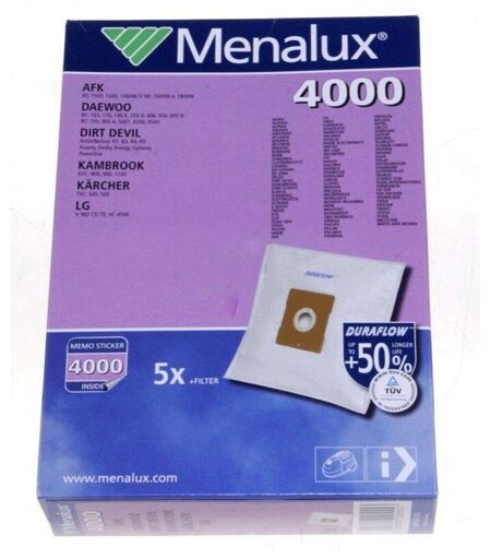 Boîte de 5 sacs + 1 micro filtre à découper Aspirateur (9001961318 AFK AMADIS BESTRON BLUESKY CURTISS DAEWOO DELONGHI DIRT DEVIL EIO FAKIR FAR FIF GOBLIN HITACHI IDELINE IMETEC KARCHER PHILIPS SAMSUNG
