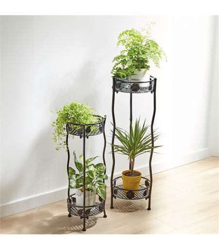 Vos plantes trouvent une place de choix sur ces supports élégants et travaillés : elles sont véritablement mises en valeur. Jolis supports en métal noir pour plantes Ces supports pour plantes proposent deux étages, pour créer un espace où vos compositions se mélangent avec grâce. - En métal - Diamètre 25 et 29 cm - Hauteur : 65 cm env. pour le petit, 85 cm env. pour le grand - Au choix : petit, grand ou le lot de 2 ...
