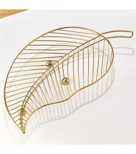 Cette corbeille de fruits originale apportera une touche de raffinement à votre cuisine. Avec sa forme de feuille dorée, elle s'intégrera parfaitement à tous les styles de décoration. Vous cherchez une solution à la fois esthétique et fonctionnelle pour ranger vos fruits ? Pratique, cette jolie corbeille permet de stocker joliment les fruits sur le plan de travail de la cuisine et elle est parfaite aussi, pour les présenter avec élégance à table, avant dégustation. - En métal - Dimensions : 39 x 19,5 x 5 cm - Belle contenance - Impressionnez vos invités avec cette magnifique corbeille de fruits en forme de feuille dorée ...
