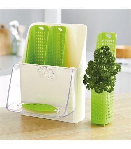 Ciboulette, basilic, persil, menthe… pour mieux les conserver, cueillez vos bouquets et placez-les dans ces 3 boîtes de conservations et dans le réfrigérateur. Conservation idéale de vos herbes aromatiques Très fonctionnelles, ces boîtes de conservation sont pensées pour entrer juste dans la porte et contiennent un effeuilleur ! Ajoutez de l’eau dans le réservoir et vous les garderez fraîches plus d’une semaine ! - En matière plastique - Dimensions : 18 x 9 x 26 cm - Taille adaptée à la porte du réfrigérateur - Avec un effeuilleur ...