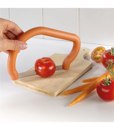 Avec sa bonne prise en main et sa lame aiguisée, ce couteau scie vous assure une coupe nette et précise de vos fruits et légumes ! L'ustensile de cuisine incontournable pour la découpe des fruits et légumes Avec ce couteau scie, tomates, courgettes, bananes, pommes de terre, … se retrouveront coupées en lamelles, en un tour de main ! Caractéristiques Matières : plastique et acier inoxydable Dimensions : 16,5 x 10 x 10 cm Points forts : Coupe précise / Bonne prise en main ...