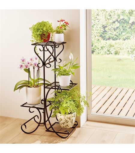 Cette jolie réalisation à la façon fer forgé offre un bel espace où vous pourrez disposer vos plantes et vos fleurs. Agencée sur 4 niveaux, elle créé un bel ensemble mis en avant par de superbes arabesques. Un support pour plantes pratique et esthétique Ajoutez une touche d'élégance à votre décoration intérieure avec ce support pour plantes en fer forgé arabesque. Avec ses quatre niveaux, ses superbes arabesques et sa construction robuste, ce support pour plantes est un choix parfait pour ceux qui cherchent à optimiser l'espace tout en ajoutant une touche de charme à leur intérieur. - En fer - Dimensions : 45 x 23 x 76,5 cm - 4 niveaux - Agrémentez votre décoration intérieure ...