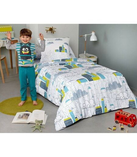 Taie lit enfant buildings et nuages - BECQUET CRÉATION - Bleu 140 cm unisex