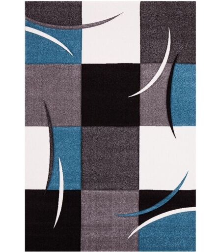 Unamourdetapis - Tapis salon et chambre 80x150 bleu rectangle tissé motif damier LYN8 comma