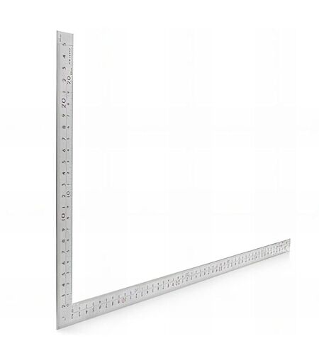 Equerre extra plate. Idéale pour tracer sur les épures et limons. Cotes intérieures et extérieures en cm et mm. ...